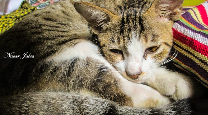 Looking at my catty, I wonder, what a wonderful life she has. Unlike me, she has no pain of separation from her family or of losing her love. No missing someone, no memories of the past haunting her. Unlike me, she doesn’t need to remember all the dates starting from the first meeting till the last fight. The first time when they exchanged those three magical words, “I LOVE YOU!”She need not remember the first time they walked hand in hand & kissed each other stealing a moment from the world and hiding themselves under a tree or in the darkness of the night. How lucky my cat is, she doesn’t even remember when was it the first time that she was badly hurt by the one she loved the most. She doesn’t hamper her sleep, thinking about those moments she once shared with her love. The hardest thing for her is to catch a mouse, whereas, for me, it’s to live without you. The most disheartening moment for her is when I’m not in a mood to play with her, but for me, it is whenever I miss you. Something that upsets her the most is when I’m sleeping & I don’t share my blanket with her, for me, it is when I’m lying on the bed hugging my pillow & remembering the memories we once cherished. I look at my cat and wonder how could she be so feeling less, how could she be so heartless. If she’s so attached to me, I being a human, then is it possible that she’s immune to the pains I’m susceptible to. If she can get so deeply attached to humans then how attached can she be to her own kind? Am I on the wrong path by thinking that I’ve got much more pain, sorrow & desperation than her? Like me, is she also trying to hide her grief behind her playful acts? Am I being fooled by her smart acts of behaving cool? God! What an amazing actor she is. She never let me feel her pain. And I always thought that she’s just Immune to them all. Hold on! I’m getting off my track!! I’m acting stupid by comparing her heartache with mine. After all, I AM A HUMAN & she’s just a small silly little cat. If she really was such a good actor then she would have given many Hits by now. Huh! I wish I too could be as carefree as my Cat.. 🙁